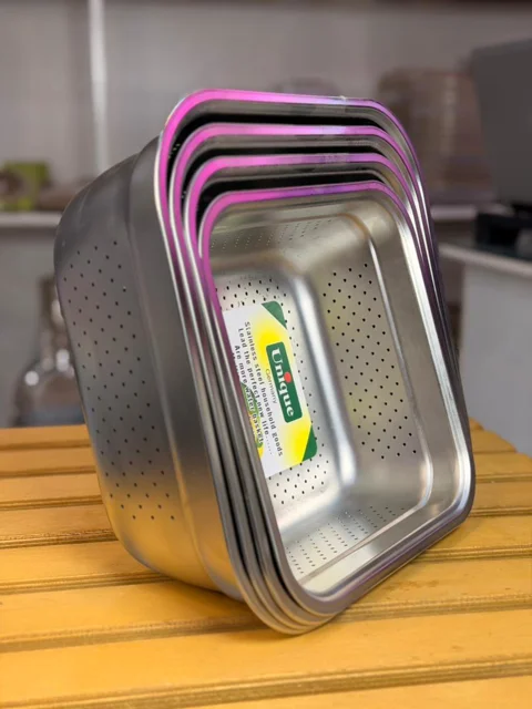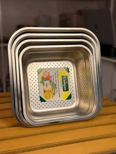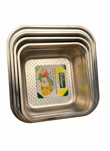 ابکش استیل از برند یونیک مدل مربع با ضمانت، در سایزهای 24.5، 26.5، 28.5 و 30.5 سانتیمتر موجود است. این محصول با طراحی مربع شکل و جنس استیل با کیفیت، مناسب برای استفاده روزمره و شستشوی انواع مواد غذایی است. تمامی عکس ها در مجموعه آس پلاس تهیه شده