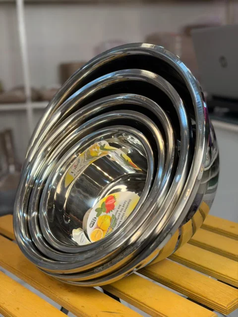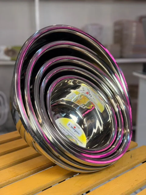 لگن 5 عددی استیل از برند معتبر یونیک با ضمانت در سایز های 22 و26و30و34و38 سانتی متر